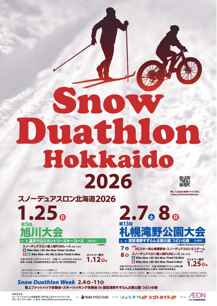 お知らせ 【2026スノーデュアスロンWEEK】2026.2.4(水)〜11(水.祝) /滝野公園Snow cycling & Cross country skiing 体験