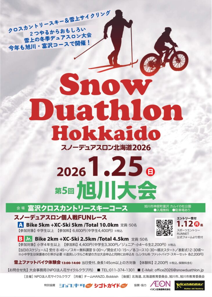 スノーデュアスロン北海道2026 第5回旭川大会[2026年1月25日(日)開催 会場:富沢クロスカントリースキーコース(旭川市)]のエントリー受付が始まりました!