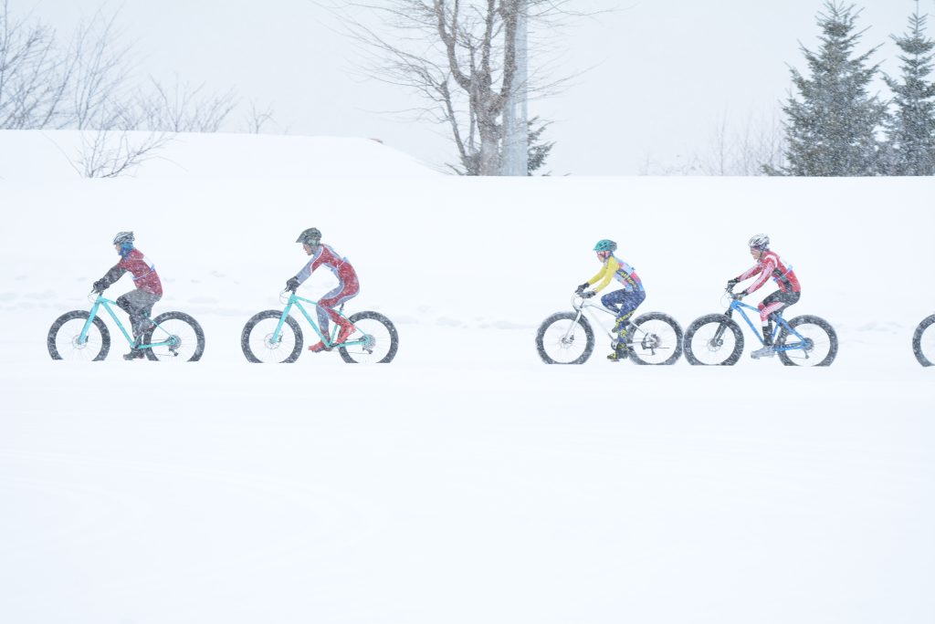 雪上自転車の楽しさを多くの方にご体験いただくため、美幌大会においても「雪上ファットバイク体験コーナー」を設置致しました。この会場を本拠地に活動しているクロスカントリースキー少年団の皆さんやご近所の方たちが遊びにきて下さいました!